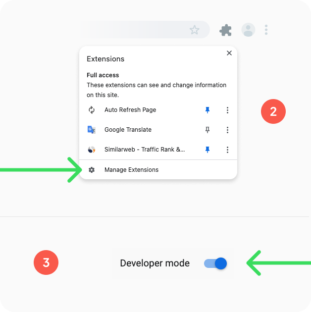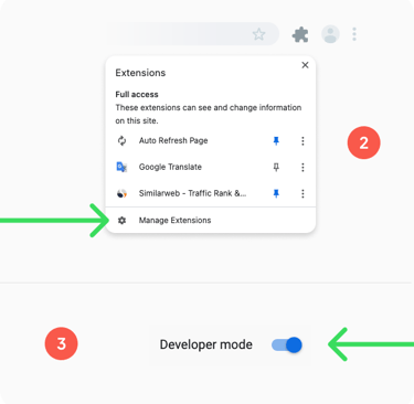 (2) Open the Chrome browser on your computer. In the top right corner of the browser window, click on the "Puzzle" icon > Manage Extensions