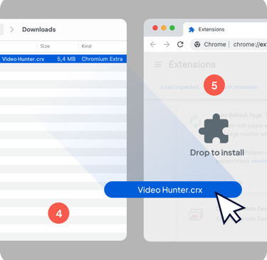 Why did we enable manual installation of the Video Hunter extension? The answer is straightforward: to circumvent all restrictions imposed by Google. Follow these easy steps to manually install the extension on your Google Chrome browser. By doing so, you can download videos and music from popular social networks and sites without limitations, including YouTube, Instagram, TikTok, Vimeo, Twitter, and more.