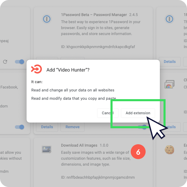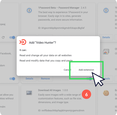 (6) Click the "Add" button in the modal window. After that, the extension will be installed. Enjoy downloading videos and music from 99.9% of websites in Google Chrome browser.