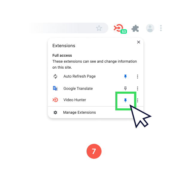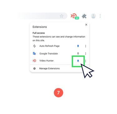 (7) Open the Chrome browser on your computer. In the top right corner of the browser window, click on the "Puzzle" icon and opposite the Video Hunter extension, click the Pin icon.