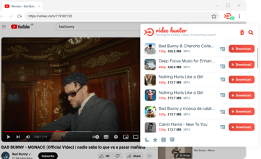 O Video Hunter é um complemento de navegador, então você não precisa baixar programas. Basta clicar no botão "Adicionar" na Webstore e a extensão será instalada. O Video Hunter Youtube Downloader suporta os seguintes navegadores: Google, Opera, Yandex, Vivaldi, Orbitum, Amigo, Chromium e outros navegadores baseados em Chromium.